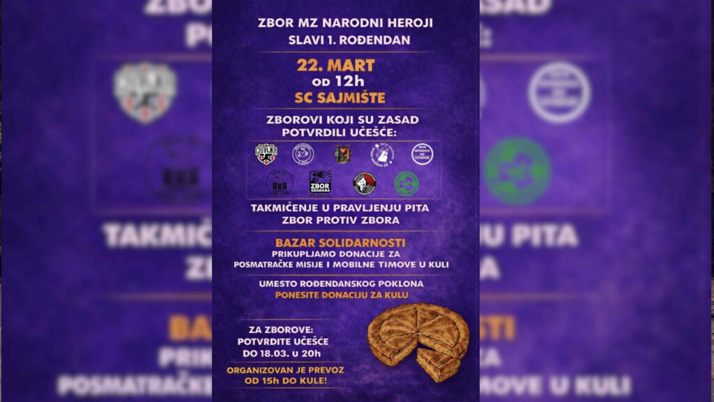 Zbor mesne zajednice “Narodni heroji”, povodom godinu dana od formiranja, u nedelju 22. marta organizuje humanitrarnu akciju “Zbor se pita – i dalje!“.