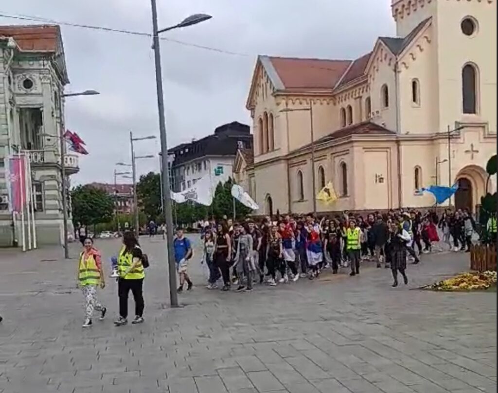 Zrenjaninski gimnazijalci krenuli su danas iz centra Zrenjanina u šetnju podrške novosadskim srednjoškolcima uoči protesta koji je zakazan za subotu, 26. april.